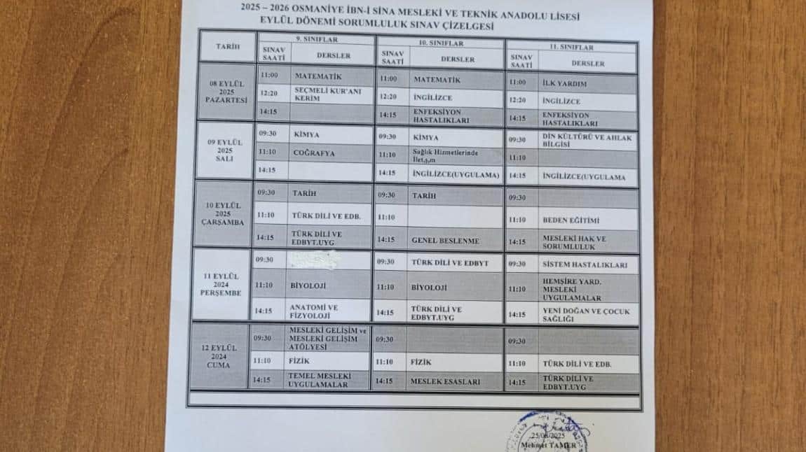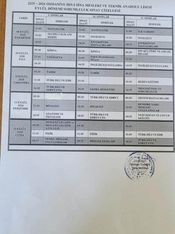 EYLÜL DÖNEMİ SORUMLULUK SINAVI TAKVİMİ